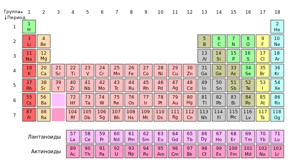 Все химические элементы по их свойствам, то есть свойствам свободных атомов и свойствам образуемых элементами простых и сложных веществ, делят на металлические и неметаллические элементы. Условно к неметаллам относят элементы He, Ne, Ar, Kr, Xe, Rn, F, Cl, Br, I, At, O, S, Se, N, P, C и H. К полуметаллам относят B, Si, Ge, As, Sb, Te, иногда — Po. Остальные элементы считаются металлами.