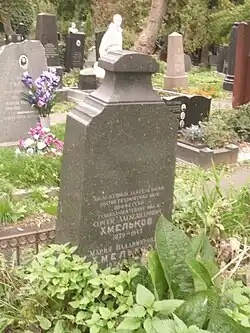 Скончался С. А. Хмельков 9 февраля 1945. Похоронен на Новодевичьем кладбище Москвы на участке 4.