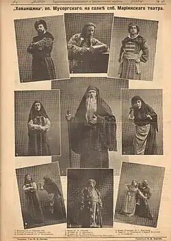 | Досифей, глава раскольников[К 7][К 8] | бас | Ф. И. Шаляпин | Ф. И. Шаляпин |