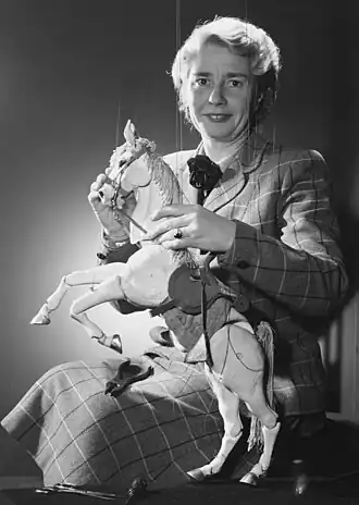 Телевизионные кукольные спектакли, в которых ослик Мафин и его друзья, ведомые рукой Хогарт, выступали на крышке фортепиано — классический пример успеха этого жанра в Великобритании.[3] Впервые на телевидении спектакли с Мафином появились в 1946 году, в программе For the Children.