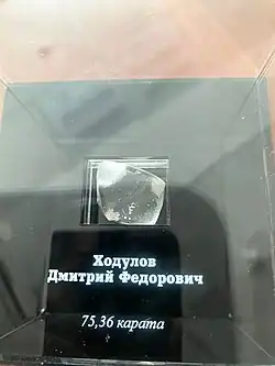Крупный алмаз, добытый 7 октября 2020 года на месторождении трубки «Юбилейная» (ПАО «АЛРОСА»), весом 75,36 карата, назван именем Д. Ф. Ходулова[16].