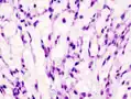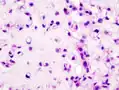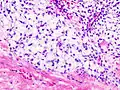 ![]() Гистограмма хондромы стенки грудной клетки. Окрашено гематоксилином и эозином. | |