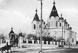 Первый каменный православный храм во имя Покрова Божией Матери с двумя приделами: в честь святителя Николая Чудотворца и святителя Иннокентия Иркутского, появился в городе в 1879 году (по другим данным в 1883). В 1930-е годы храм был разобран для строительных нужд города. В 1997 году, в год 200-летия со дня рождения Святителя Иннокентия, на месте нахождения Покровского храма началось строительство нового кафедрального собора в честь Благовещения Пресвятой Богородицы, который был построен по образцу этой Покровской церкви[6][7].