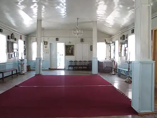 После многочисленных перестроек в храме появились колокольня, молельный зал, абсида. Здание храма представляет собой вытянутый прямоугольник. В храме много церковной утвари.