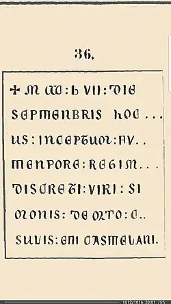 Летом 1861 года по поручению Одесского Общества истории и древностей в Крым приехал адъюнкт-профессор греческой и римской словесности В. Н. Юргевич, посетивший в том числе и Балаклаву. В отчете Обществу о своей поездке[15][16] он писал: «Какая судьба постигла надписи, существовавшие ещё в Балаклаве перед последней войной, я сказал выше. От похищения, сделанного с распоряжения генерала Ламармора, спаслась только одна, потому, что была заштукатурена и никому не известна. Это надпись в бывшей генуэзской, ныне православной церкви Двенадцати Апостолов, находящейся на краю города, вблизи крепости. Камень на котором она изсечена вделан в стену около дверей церковных. 1357 die Septembris hoc (op)us inceptum fn(it) tempore regim(inis) discreti viri Si Monis de Orto, con sulis et Castelani. 1357 в день … сентября, начата эта постройка во время управления скромного мужа Симоне дель Орто, консула и коменданта».