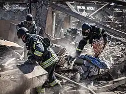 Российский ракетный удар по Харькову. Частично разрушен жилой дом, погибли 9 человек и пострадали 25[50][51].