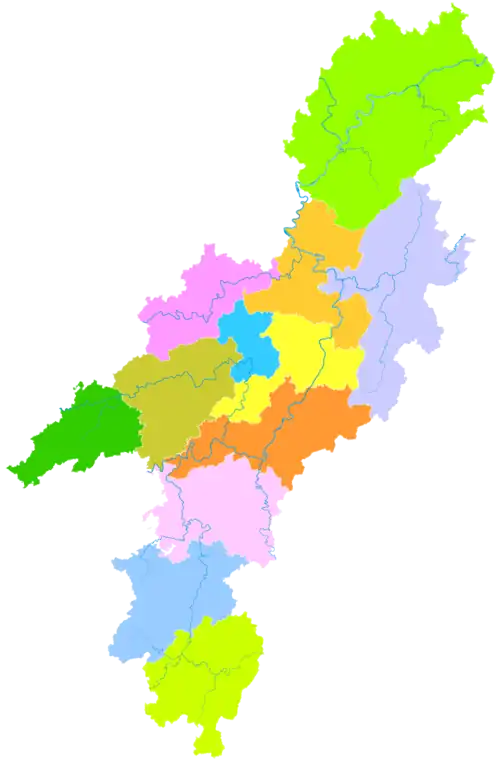 | Городской уезд | Хунцзян | 洪江市 | Hóngjiāng shì | |||