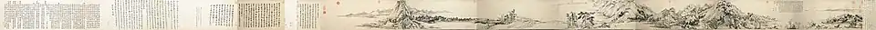 Среди них есть довольно необычная работа «Чистота после внезапного снега». Это небольшой свиток, написанный как приложение к каллиграфическому произведению Чжао Мэнфу. Чжао написал для Хуана четыре больших иероглифа, взятых из письма великого каллиграфа IV века Ван Сичжи, которое сохранилось в копиях. Некоторое время спустя, около 1340 года, Хуан Гунван подарил свой свиток некоему Мо Цзинсину как приложение, иллюстрирующее этот короткий текст.