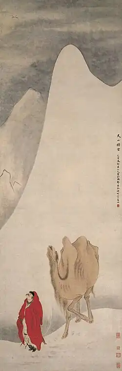 - «Озябший верблюд на талом снегу» («Хань то цаньсюэ ту»)《寒驼残雪图》, 1746, — свиток, 139,7 x 58,4 см; бумага, краски