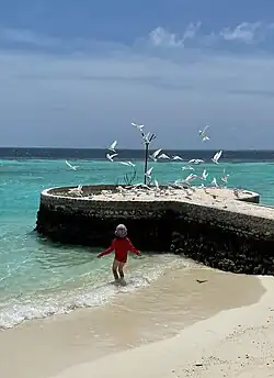 - ↑ Образован в конце XX века в результате перемещения донного грунта при углублении причальной зоны во время строительства на Хувахендху гостиницы. Используется как площадка для барбекью для постояльцев гостиницы.