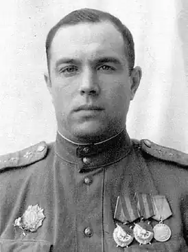- ↑ Информация из карточки награждённого орденом Отечественной войны I степени Архивная копия от 12 февраля 2012 на Wayback Machine.