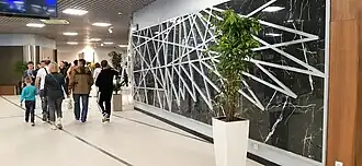Коридоры комплекса украшают панно, автором идеи которых стал художник Бобур Исмаилов.