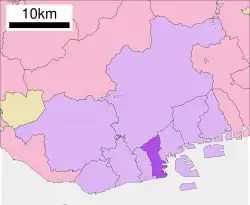 - 1 сентября 1931 – в рамках внутригородского районирования г. Кобе, район Минатониси-ку был учреждён в границах бывшего Хёго-тё, западнее реки Минато.