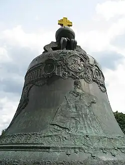 Царь-ко́локол — памятник русского колокололитейного искусства XVIII века. Высота с перемычкой составляет 6,24 м, диаметр — 13,6 м; масса 202 тонны. По назначению никогда не использовался. Колокол отлили по приказу императрицы Анны Иоанновны в 1730 году в память потомкам о её царствовании[1]. В 1737 году во время Троицкого пожара был повреждён и пролежал в земле около века. В первой половине XIX века его подняли и установили на постаменте в Московском Кремле возле колокольни Ивана Великого[1].