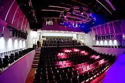 После реконструкции площадь центра составила 8,5 тысяч м². Из них 6,83 занимает главное четырёхэтажное здание, в котором располагаются кассовый, распределительный вестибюль, гардероб, многофункциональный зрительный зал с амфитеатром и балконами на 500 мест, а также малый зал на 150 мест, комнаты отдыха для артистов, звуко-аппаратная и свето-проекционная, танцевальный зал с эстрадой. Сцена в зрительном зале может трансформироваться — отдельные части подиума поднимаются и опускаются[4][5] [6] [7][8].