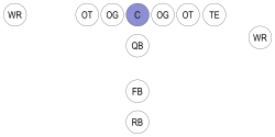 - Блокирование одного из лайнбекеров защиты; в том случае, если лайнбекеры защиты не пытаются прорваться за линию схватки, центр проходит вперед, прокладывая дорогу игроку с мячом и блокируя встречающихся соперников.