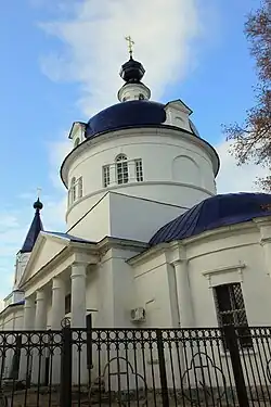 В 1835 году при большой реставрации храм был построен из кирпича в стиле классицизма. Основной кубический объём здания с развитой апсидой и портиками по сторонам завершён массивной купольной ротондой. Трёхъярусная шатровая колокольня была соединена с обширной трапезной. В трапезной находились два придела: Никольский и Казанский[1].