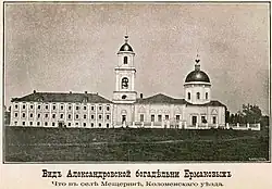 Основательно Богородицкий храм был перестроен на средства семьи купца Ермакова в 1845 году, когда был изменён декор церкви, пристроена трапезная с Введенским и Всехсвятским приделами (с устройством под левым её приделом фамильного склепа). В 1850 году была возведена трехъярусная колокольня, позднее к ней было пристроено большое трехэтажное здание богадельни, выстроенное из кирпича и камня разобранного к тому времени господского дома[4]. В 1903 году с архипастырским визитом храм посетил будущий митрополит — епископ Дмитровский Трифон (Туркестанов), викарий Московской епархии.