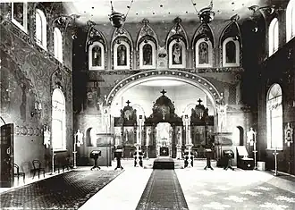 До революции жертвенник в алтаре был мраморным. На нём была установлена металлическая доска с именами убитых в битвах Русско-турецкой войны 1877—1878 годов: под Горным-Дубняком, Араб-Канаком и Филиппополем.