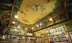 Для отделки интерьеров Перлов заказал у китайских мастеров две полутораметровые вазы и шёлковое панно «Китаец» и «Китаянка». В помещении были установлены мягкие пуфики, на которых можно было дегустировать продукцию магазина. Кессонный потолок украсили орнаментом с позолотой и лампочками, намеренно оставленными архитектором без плафонов: в момент перестройки магазина электрическое освещение было редкостью и подчёркивало премиальный статус заведения. Строительные и отделочные работы были окончены в 1896 году[13][18][20].