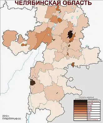 Область — наиболее плотно населённая из регионов Урала и вторая после Свердловской области по уровню урбанизации. По плотности населения Челябинская область — 24-й регион РФ (без Москвы и Санкт-Петербурга), а по уровню урбанизации — 9-й (без авт. округов).