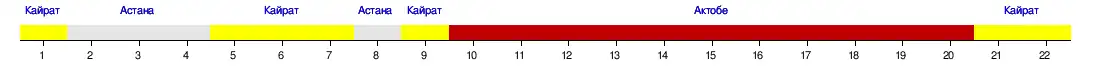| Кайрат | 2 | 1 | 1 | 1 | 1 | 1 | 1 | 2 | 2 | 2 |
