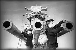 ![]() Крейсер «Красный Крым» Черноморского флота под огнём противника при прорыве в осаждённый Севастополь, 1942 год[2]. | ||
