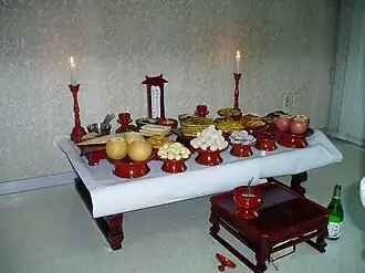 - кансин (кор. 강신?, 降神?) — призывания духов предков;