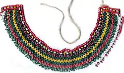 По сравнению с вышитым орнаментом, украшения считаются более ранними по происхождению, так как для их изготовления не требовалось обрабатывать кожу или ткани, работать с иглой и нитью. Для древнейших украшений применяли камни, кости, раковины, дерево, бисер, бусы и т. п.