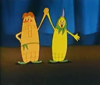 | Роли озвучивали: | Серафим Аникеев (Арбуз), Леонид Пирогов (Колос), Лариса Бухарцева (Кукуруза), Георгий Иванов (Бык), Георгий Вицин (Петух), Екатерина Семёнкина (мать Кукурузы), В. Барановский (Виноград) |