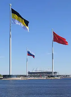 - ↑ В Петербурге на высоту 179 метров торжественно подняли флаги трёх исторических эпох. Российская газета (17 июня 2023). Дата обращения: 20 июня 2023. Архивировано 20 июня 2023 года.
