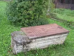 Церковь Рождества ХристоваНадгробная плита у церкви, с надписью «Под этой доской покоится прах тела раба Божия Николая Новосильцева, скончавшегося в 1796 году, жития его было 79 лет»