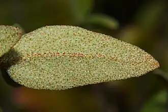 Слева направо: 1 — лист крупным планом; 2 — лист с обратной стороны; 3 — стебель с листьями; 4 — листья. | ||||||||||