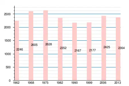 Согласно переписи населения 2009 года, на площади 1142 га проживает 2455 человек[7]. Население коммуны в 2011 году составляло 2401 человек[8], в 2012 году — 2372 человека[9], а в 2013-м — 2364 человека[5].