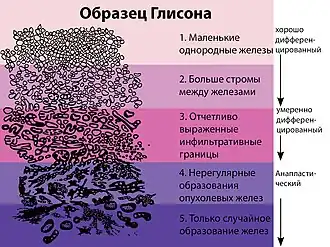 Высокие значения шкалы Глисона соответствуют ослабленной дифференциации опухолевой ткани