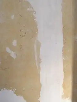 Шпаклёвка (спец.: шпатлёвка[1][2]; от нем. Spachtel — лопатка) — пастообразный или порошковый материал, применяемый для выравнивания поверхностей перед нанесением на них материалов для отделки помещений[3]. Шпаклёвками называют составы, применяемые для выравнивания поверхностей, которые подлежат окраске. Шпаклёвки бывают разных видов. Для их приготовления применяется хозяйственное мыло, мел, мучной клей, столярный, животный, лаки, просеянный гипс, олифы.
