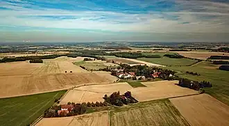 Соседние населённые пункты: на севере — деревня Зерка (Жарки, в городских границах Вайсенберга), на северо-востоке — деревня Траушвиц (Трушецы, в границах сельского населённого пункта Ностиц), на востоке — деревня Краппе (Храпов, в городских границах Лёбау), на юге — деревня Вола (Валовы, в городских границах Лёбау), на юго-западе — деревня Брайтендорф (Вуезд, коммуна Хохкирх) и на западе — деревня Чорна (Чорнёв, коммуна Хохкирх)[1].