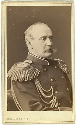Граф Пётр Андре́евич Шува́лов (15 [27] июня 1827, Санкт-Петербург — 10 [22] марта 1889, Санкт-Петербург) — русский военный и государственный деятель, генерал-адъютант (27 марта 1866), генерал от кавалерии (1 января 1872), член Государственного совета, генерал-губернатор Прибалтики (1864—1866), шеф Отдельного корпуса жандармов и главный начальник Третьего отделения Собственной Е.И.В. канцелярии (1866–1874), чрезвычайный и полномочный посол в Великобритании (1874—1879), а потом представитель России на Берлинском конгрессе. За своё огромное влияние на императора Александра II получил прозвища «Пётр IV»[3], «Вице-император», «Лев Жандармерии», «Второй Аракчеев»[4].