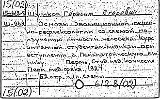 - ↑ Шумков Герасим Егорович, профессор кафедры психиатрии Пермского мединститута. Государственный архив Пермского края. Дата обращения: 16 апреля 2021. Архивировано 16 апреля 2021 года.