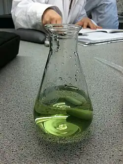 Реакцию нужно проводить под вытяжкой, так как выделяющийся хлор очень вреден для здоровья.
