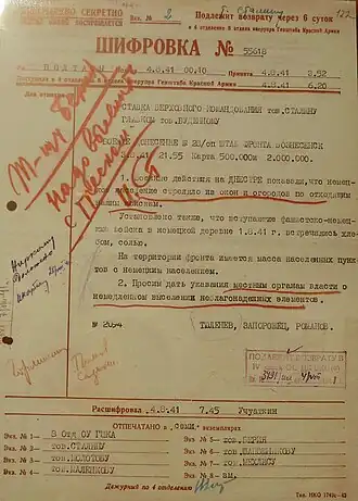 - ↑ Кривошей Д. А. Судьбы народов Беларуси под оккупацией (июнь 1941 — июль 1944 г.). — М.: Фонд «Историческая память», 2017. — С. 56 — 58.