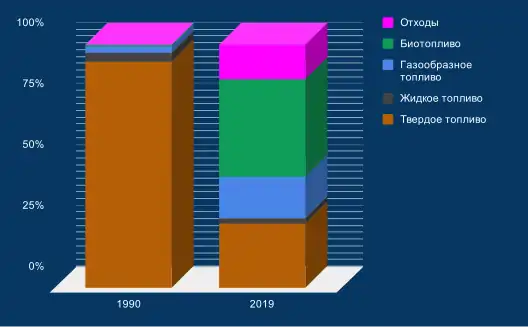 В структуре производства первичной энергии свыше 41% приходится на сырую нефть и нефтепродукты и 22% на природный газ. И если по первому из названных энергоносителей страна являлась нетто-импортером, то по природному газу - нетто-экспортером. ВИЭ, включающие биотопливо составили около 34%. В конечном энергетическом потреблении превалирует сырая нефть и нефтепродукты - 37,2%, следующие по удельному весу электрическая энергия - 19,8% и теплоэнергия - 18,3%. Доля ВИЭ (с учётом биотоплива) - 12,4% и природного газа - 11,4%.