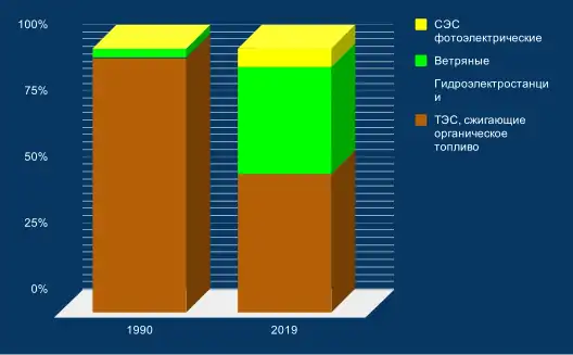 Сокращения: ТЭС - тепловая электростанция; ГЭС - гидроэлектростанция; ВЭС - ветряная электростанция; СЭС - солнечная электростанция