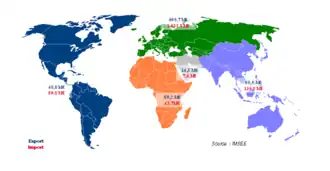 | Партнёры по импорту | Европа - 73,17 % Азия - 11,35 % Америка - 10,84 % Африка - 4,12 % Средний Восток - 0,53 % (2015) |