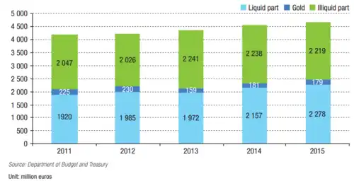 Создание в 1962 году Конституции, Конституционный Резервный Фонд (Constitutional Reserve Fund (CRF) является резервом Монако, «заначкой» в стране. Это автономный объект учета, со своими собственными активами, а также ему принадлежит особый статус. В соответствии с Конституцией, доходы Фонда состоят из любых излишек доходов над расходами, зарегистрированными после окончания бюджетного года, а также доход от финансового управления, управления недвижимостью и продажей подвижных или основных средств. Также включены в Конституционный Резервный Фонд доходы от прироста капитала в результате продажи активов или переоценки движимого или недвижимого имущества недвижимости. Расходы включают в себя, в соответствии с Конституцией, любой излишек расходов по выручке, зарегистрированный после окончания бюджетного года, а также расходы на управление финансами, управление недвижимостью (недвижимым имуществом), приобретение движимого имущества или реальных активов по операциям с недвижимостью, а также при потере капитала в результате продажи или обесценивания этих активов[2]. Резервы на 2015 год составили 4 676 млн евро.