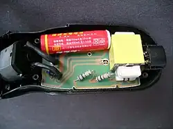 - В современные электробритвы часто устанавливается малогабаритный Ni-Cd, Ni-MH или Li-Ion аккумулятор. Бритвы с встроенным аккумулятором подразделяются на два типа: модели с питанием (при работе) только от аккумулятора и модели с питанием от аккумулятора и сети, когда можно одновременно заряжать аккумулятор и бриться.