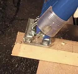 - Из-за того, что пилка крепится за один конец, её технологически трудно изготовить такой же тонкой, как в ручном или стационарном лобзике. Это приводит к увеличению минимального радиуса линии пропила.