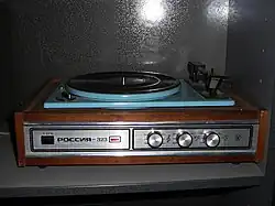 Электрофо́н — по принятой в СССР терминологии[1] — электроакустический аппарат, конструктивно объединяющий электропроигрыватель (ЭПУ), полный усилитель мощности сигналов звуковой частоты и бытовую встроенную или выносную акустическую систему, предназначенный для воспроизведения звука с грампластинок.
