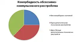 Согласно исследованиям англ. CNCG study 25% больных ОКР коморбидных состояний не имели[6]. 37% страдали ещё на одно психическое расстройство, 38% — на 2 и больше[6]. Наиболее частыми диагностируемыми состояниями были большое депрессивное расстройство (БДР), тревожное расстройство (в том числе тревожный невроз), паническое расстройство и острая реакция на стресс[6]. У 6% было диагностировано биполярное аффективное расстройство[6]. Единственной разницей в половом соотношении было то, что у 5% женщин было диагностировано расстройство приёма пищи[6].