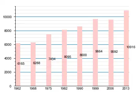 Население коммуны в 2011 году составляло 10559 человек[6], в 2012 году — 10764 человека[7], а в 2013-м — 10916 человек[5].